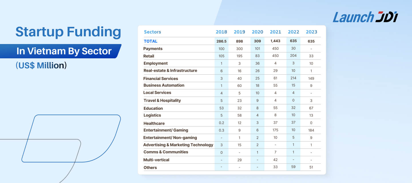 The Vietnam startup ecosystem is further bolstered by government support, with initiatives like special tax exemptions to foster business growth within the country. Additionally, ongoing efforts to promote national digitalization and the adoption of cashless transactions also further boost the development of tech startups across diverse sectors.